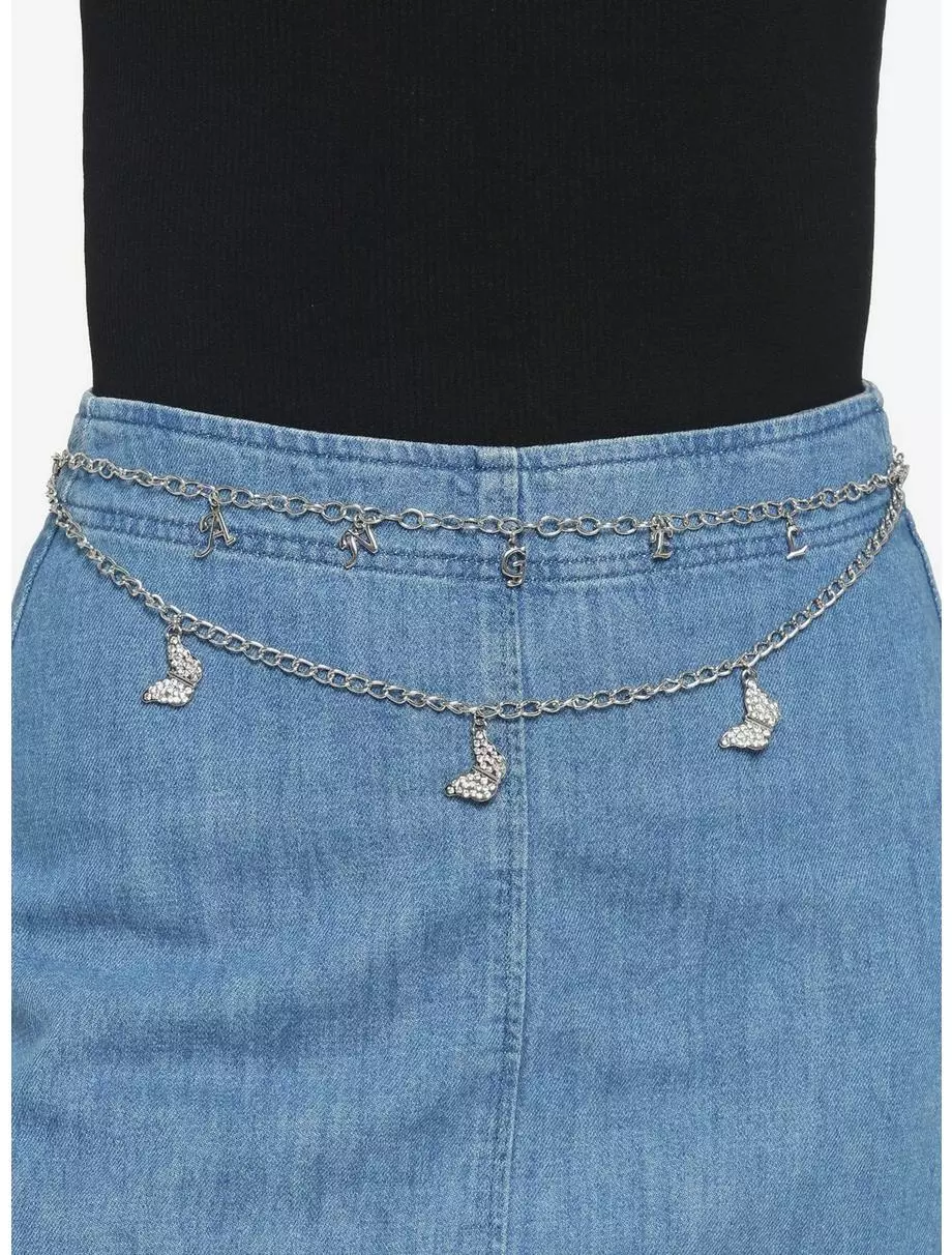 Add something angelic to your look! This silver-tone chain belt features two layers, the top with “Angel” spelled out and the bottom with gem-filled butterflies to add some sparkle to your outfit.
