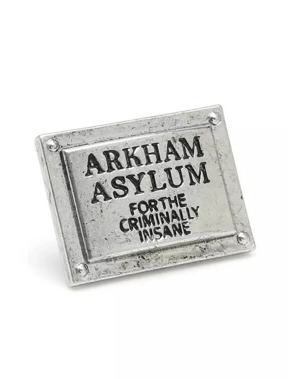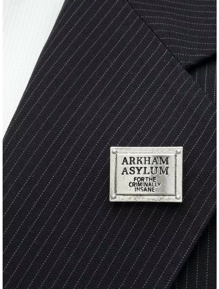 If Gotham’s most feared hospital is a source of fascination for you, where only the most depraved minds are held, then our Arkham Asylum lapel pin will become your new favorite accessory. Designed to replicate the hospital’s plaque in miniature, this pin features raised and recessed metal and a clutch backing. Officially licensed by DC Comics. Approximately 1″ x 3/4″, plated base metal, clutch back closure.