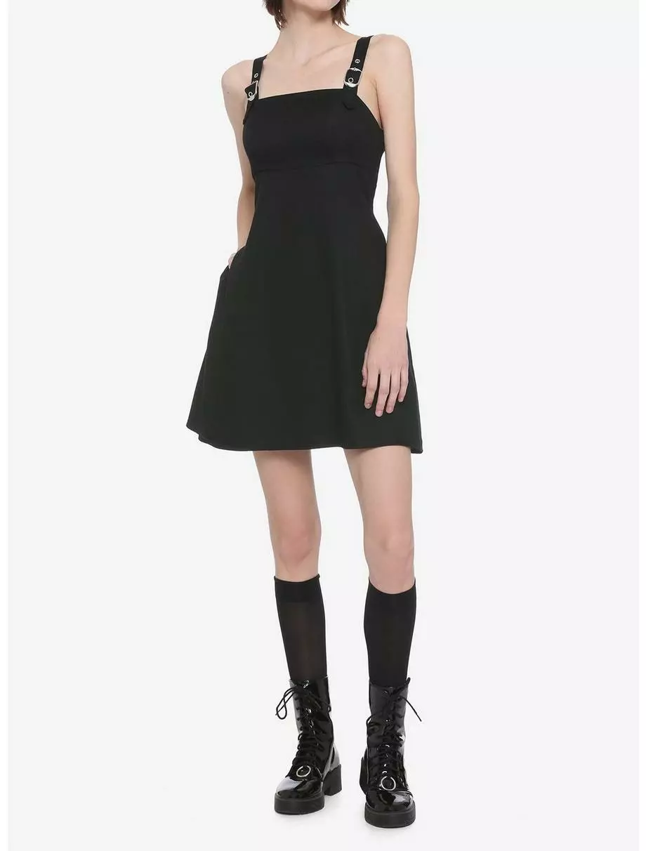 We have your new favorite dress! This black pinafore dress features adjustable buckle straps and a smocked back. Wear it as is, or with a long-sleeve underneath. Side zipper closure and hip pockets.