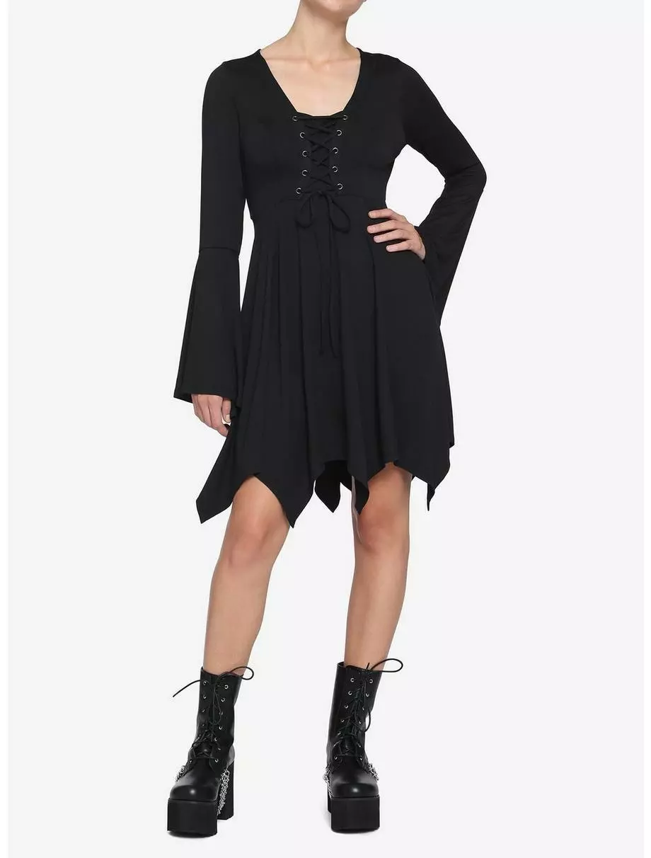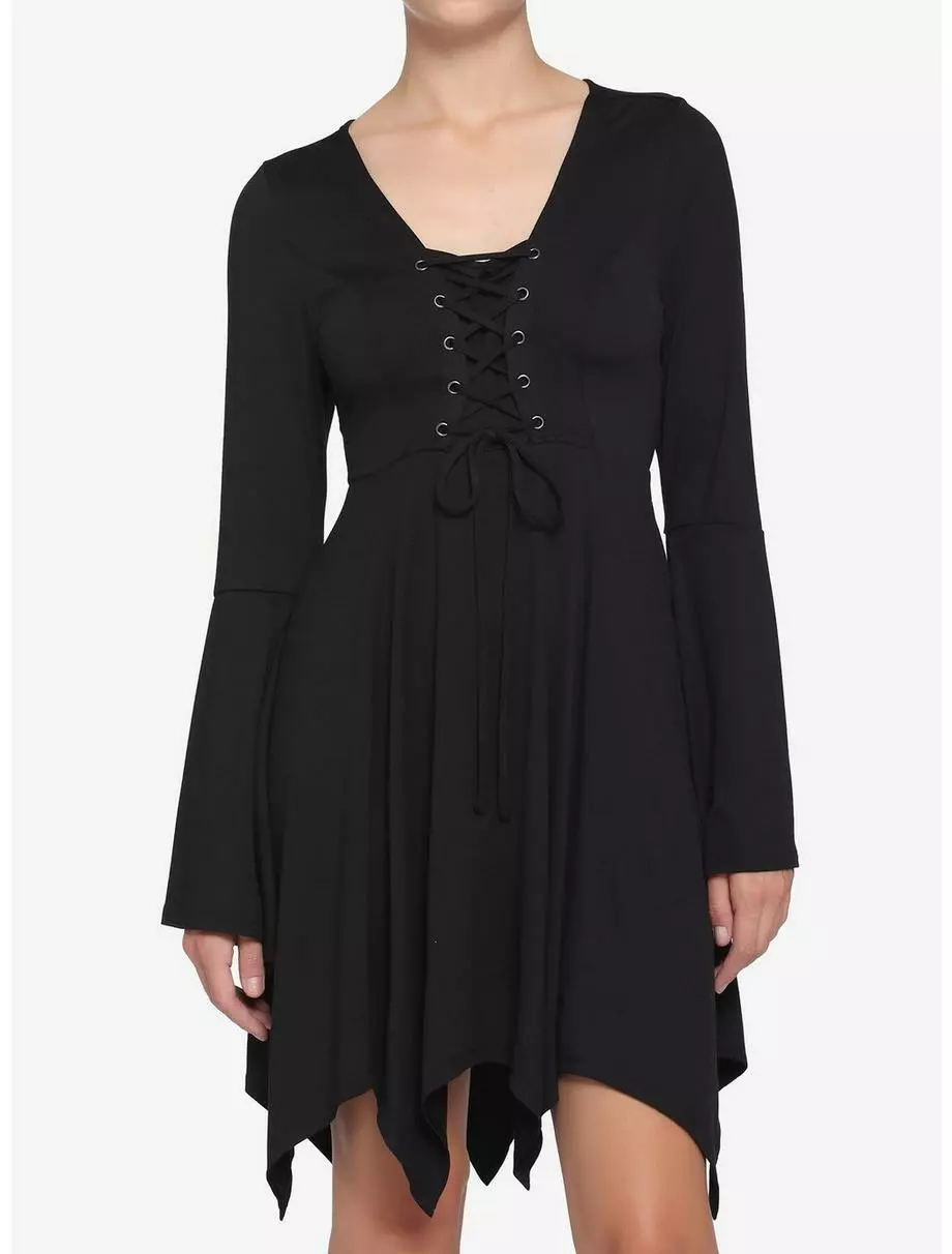 Black Lace-Up Hanky Hem Dress