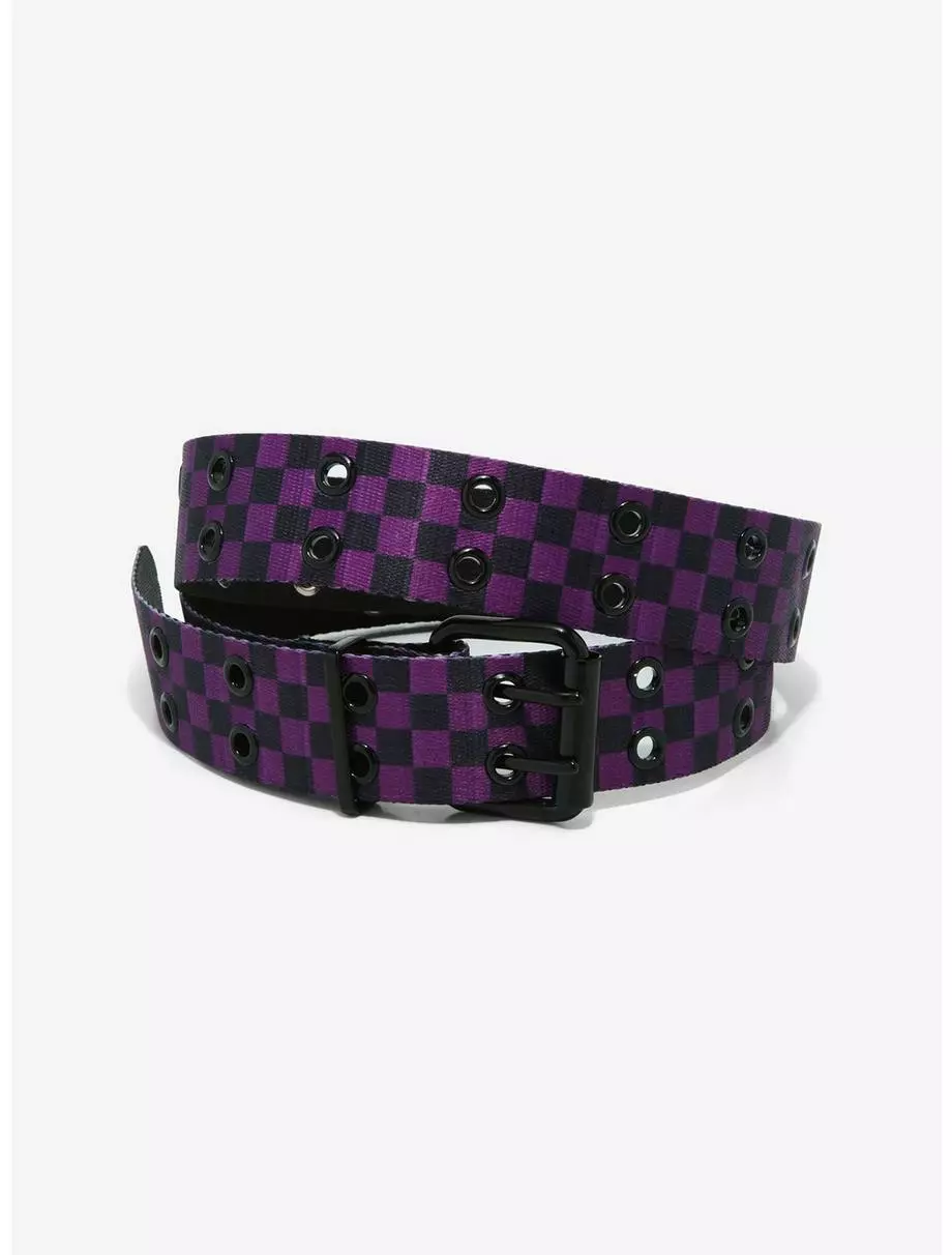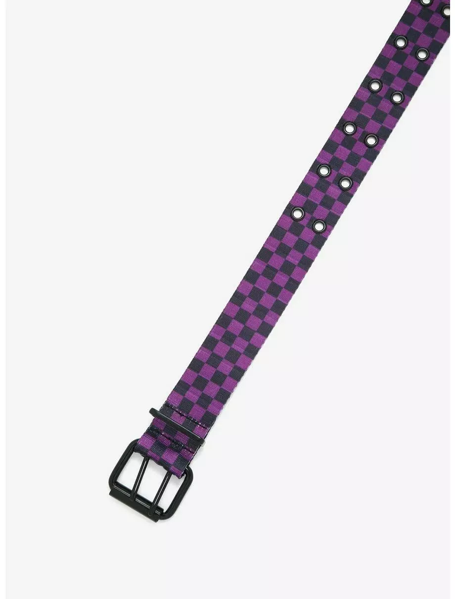You can’t go wrong with the classic checkered look. Bring those punk vibes to your OOTD with this belt, featuring a black and purple checkered print, plus two rows of grommet detailing.