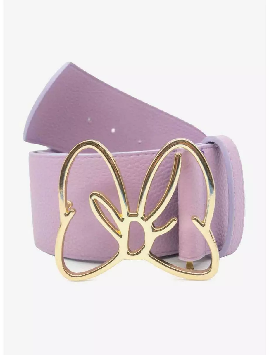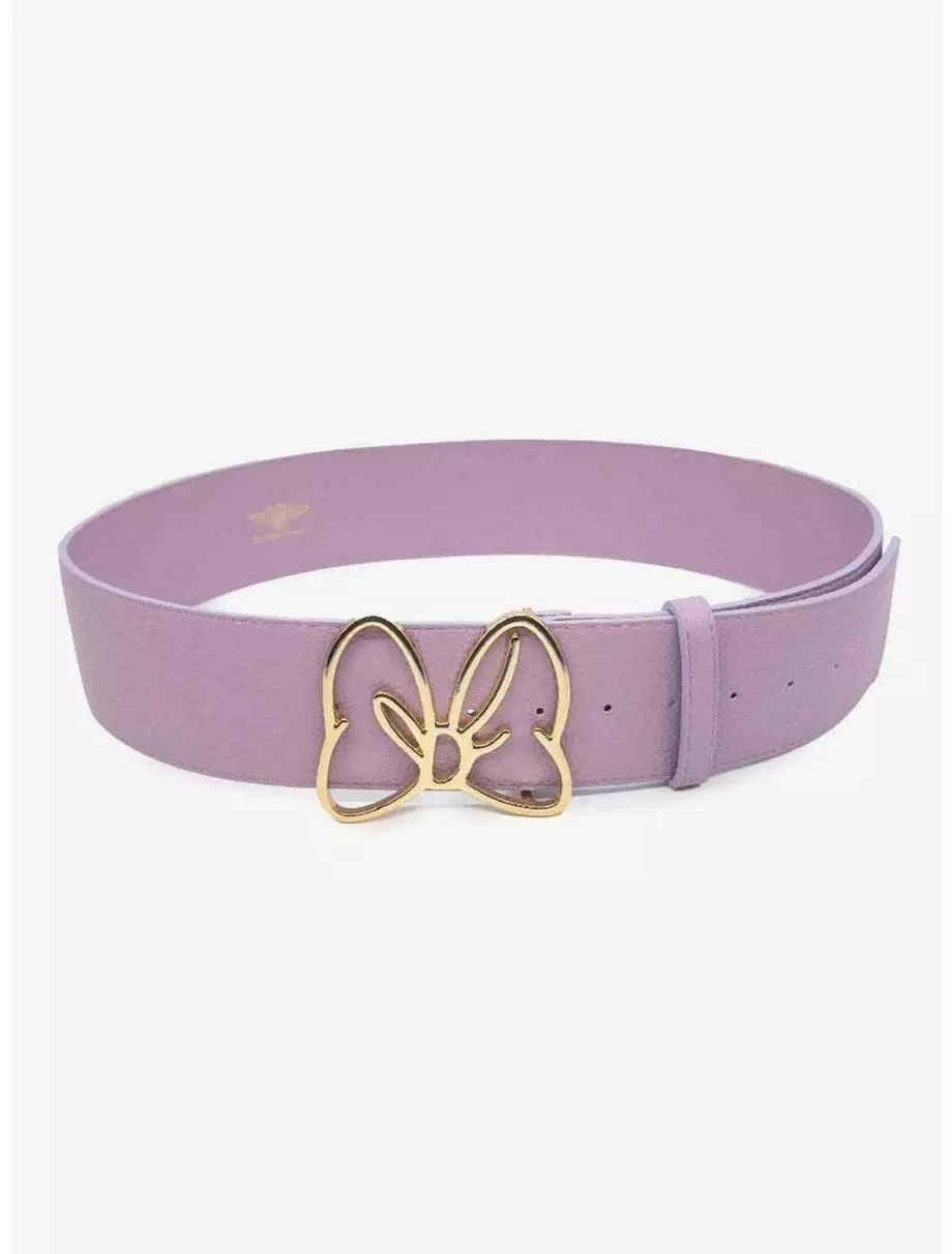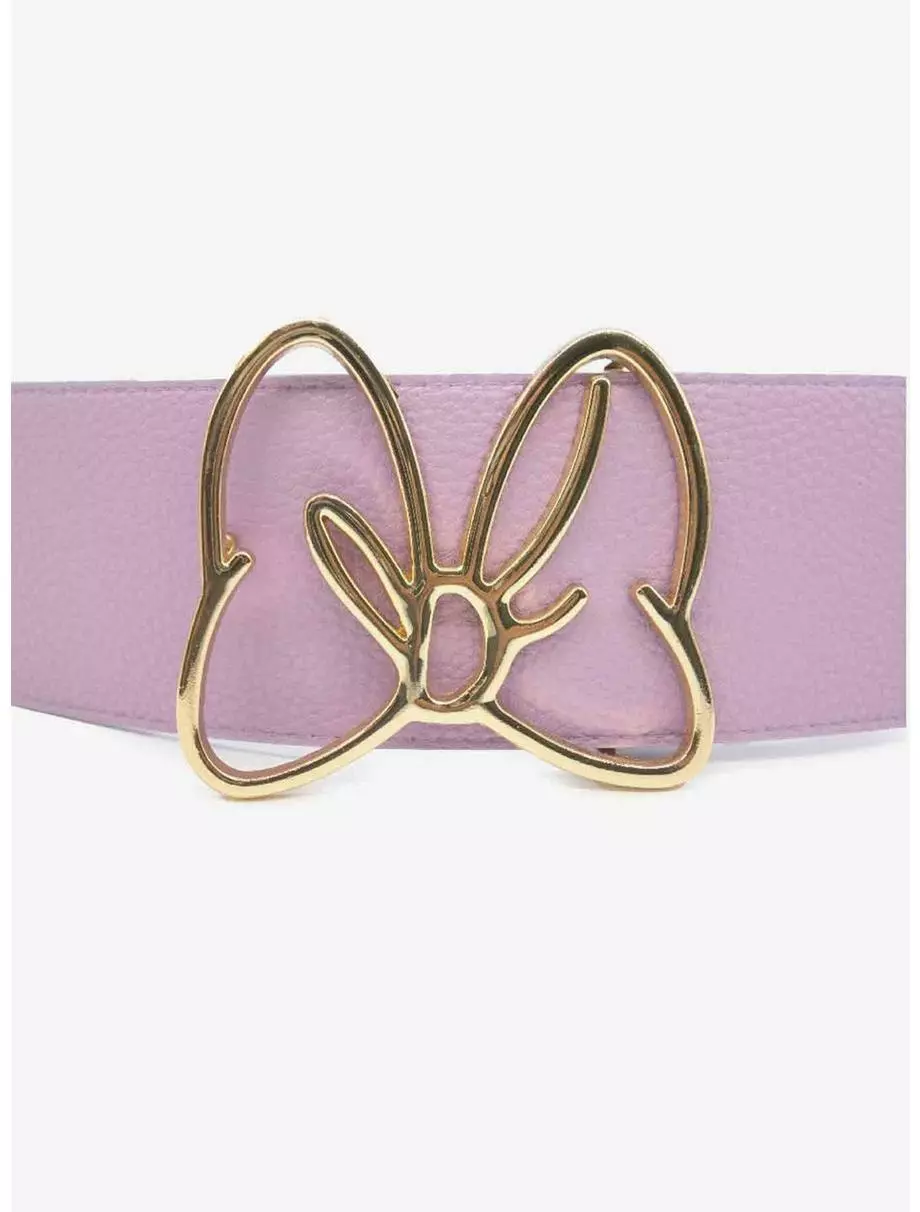 Disney Minnie Mouse Gold Bow Buckle Lilac Vegan Leather Belt