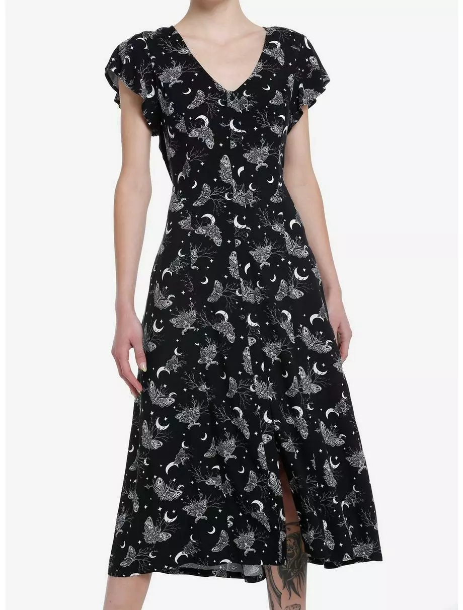 Cosmic Aura Witchy Moth Midi Dress