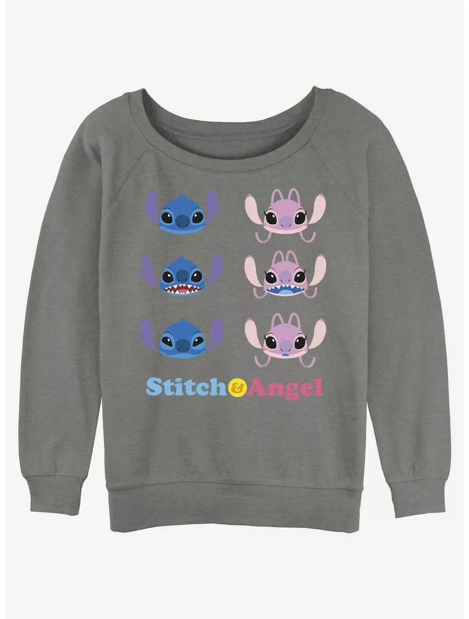 Disney Lilo & Stitch Angel & Stitch Faces Girls Slouchy Sweatshirt