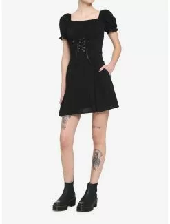Black Lace-Up Sweetheart Sleeveless Dress Plus Size