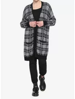 Black & White Plaid Lightweight Girls Oversized Cardigan