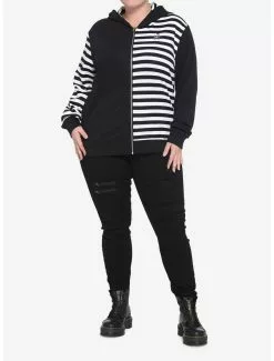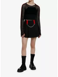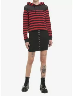 Black & Red Stripe Mesh Shoulder Crop Girls Hoodie