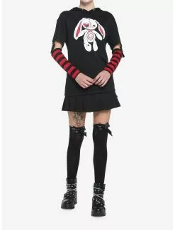 Black & Red Bunny Girls Detachable Sleeve Hoodie