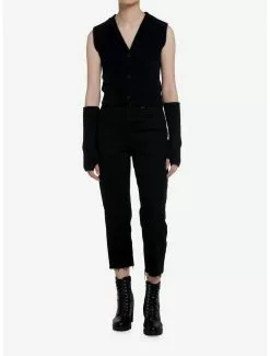 COSMICAURA Cosmic Aura Black Fuzzy Girls Vest With Arm Warmers
