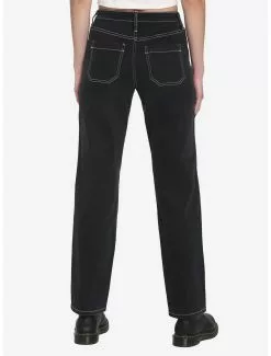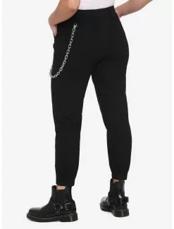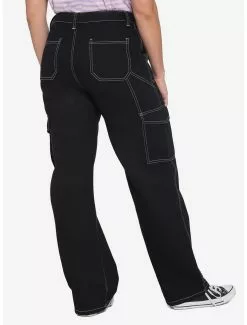 Black & Green Contrast Stitch Carpenter Pants With Detachable Chain