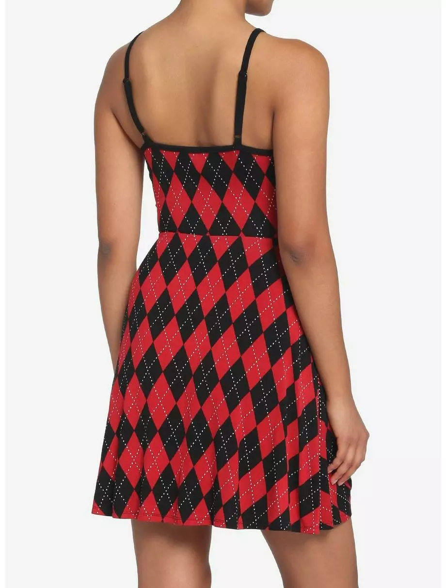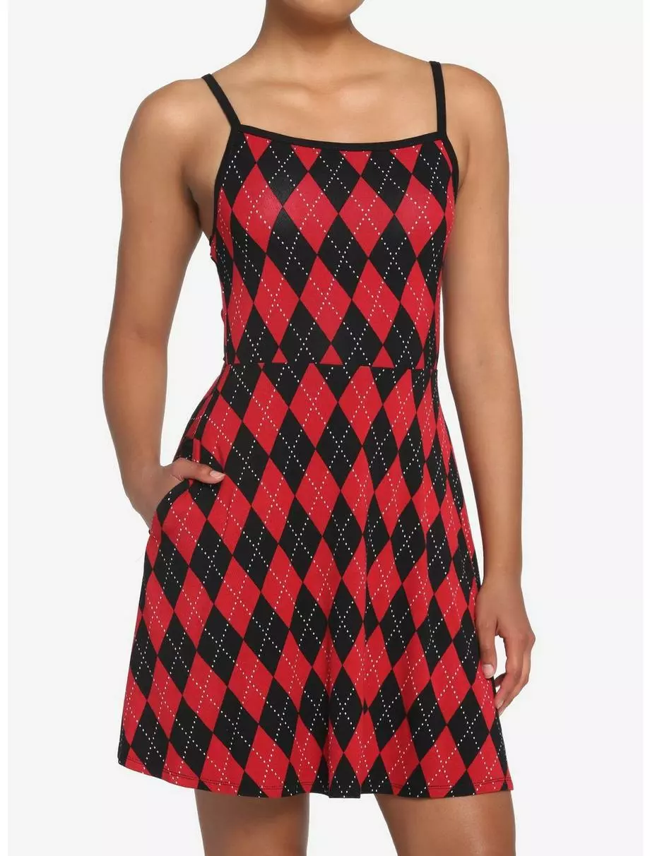 Update your dress collection with this red and black number. With a bold argyle print and skater silhouette, you can’t go wrong. Comes with adjustable straps and just the right amount of stretch.