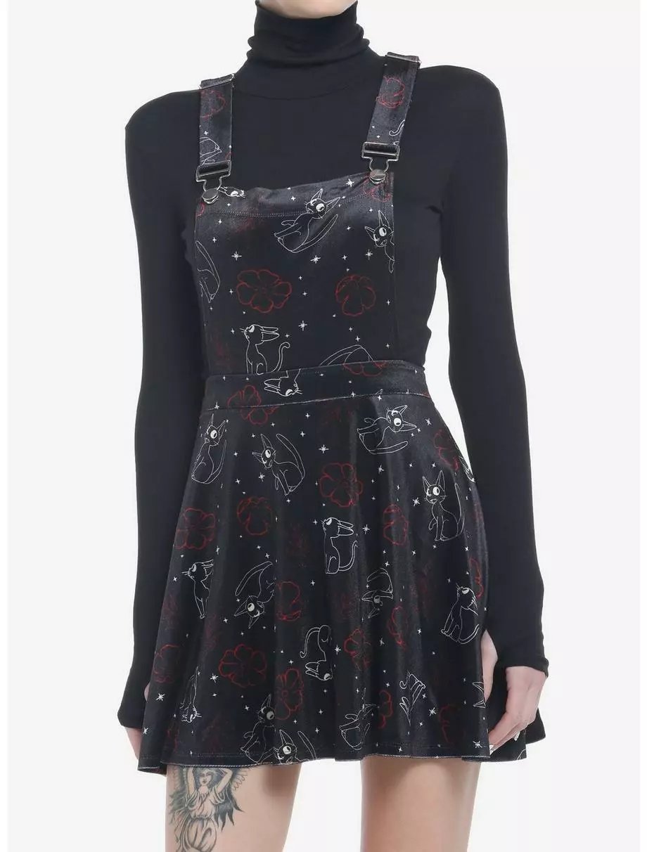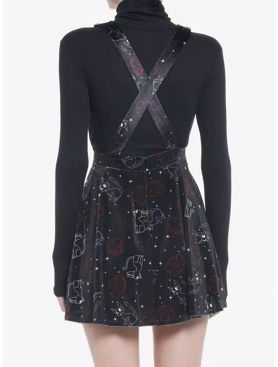 Going stargazing tonight? Grab your broomstick and make sure you’re wearing the perfect outfit! This velvet skirtall from Kiki’s Delivery Service features an allover design of Jiji and star constellations, and comes with adjustable straps and pockets.