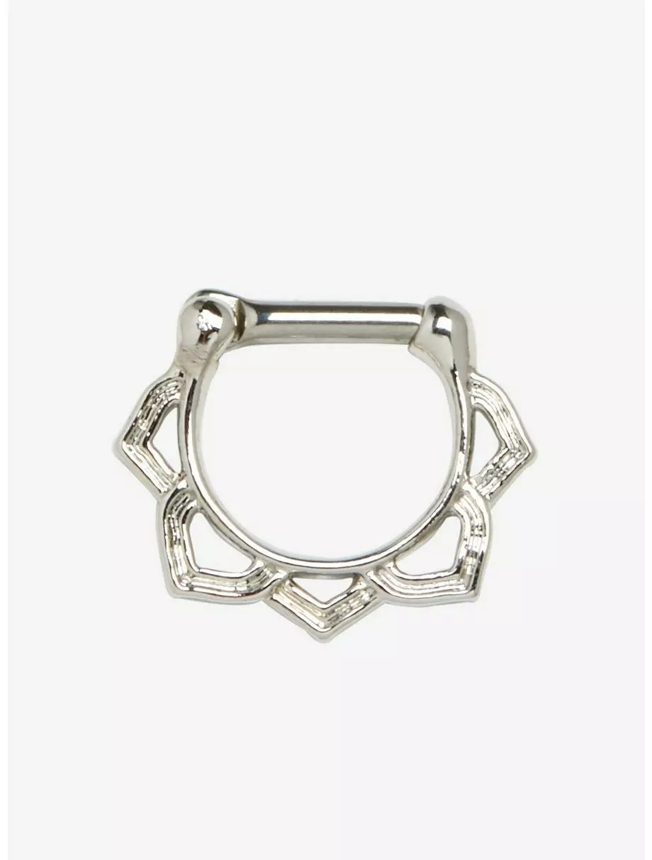 Feel the grace and tranquility of the lotus flower with this delicate silver tone septum clicker.