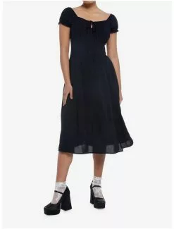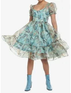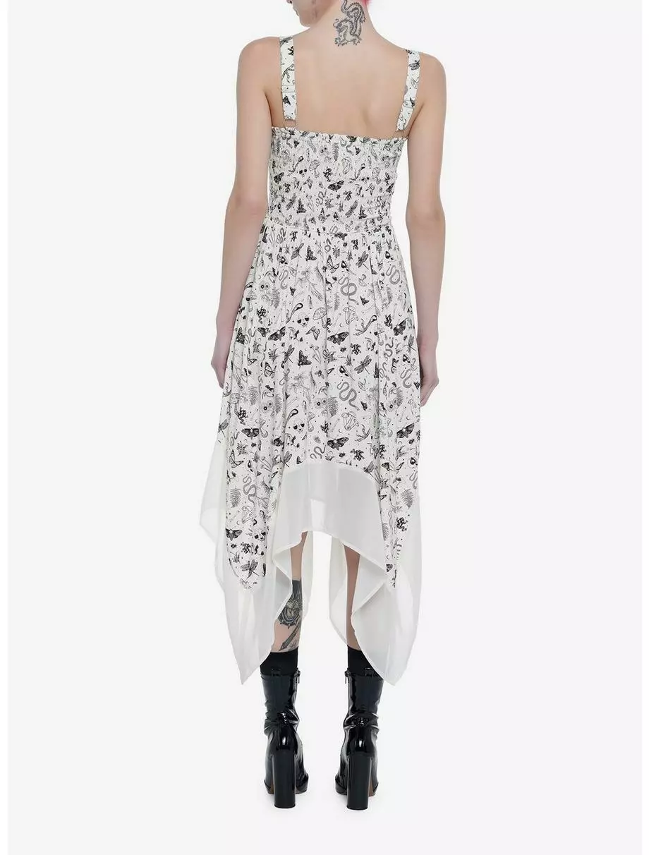 Looking for a flowy frock perfect for field frolicking? This ivory dress features a cottagecore-inspired print of insects, frogs, mushrooms and more. The bodice is smocked and has adjustable straps. The skirt is extra flowy thanks to its hanky hem. There are pockets, as well.