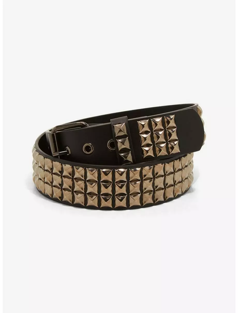 Bring some edge to your emo fit! This pyramid stud belt is a must for any punk look, and features three rows of gunmetal-tone pyramid studs all around.